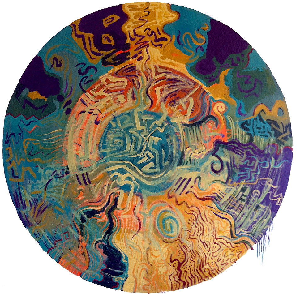 Mandala mural painted with acrylics on the wall in the author’s home.